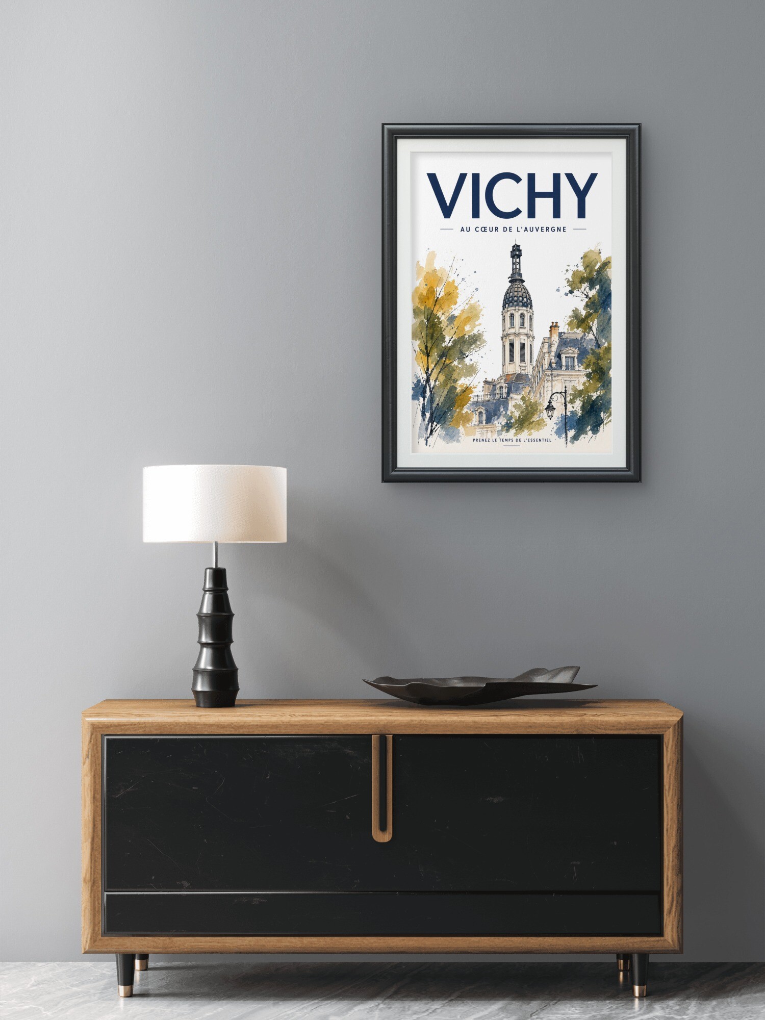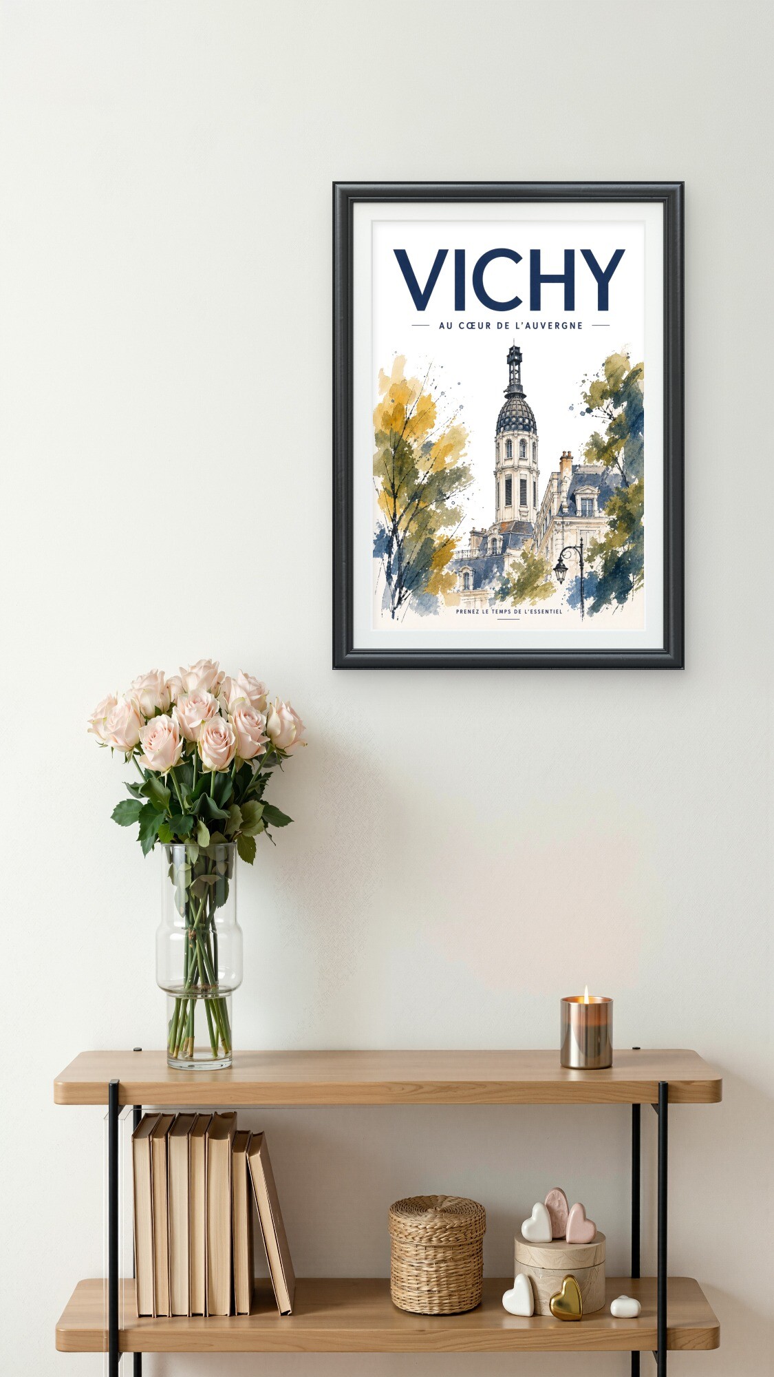 Elle trouvera facilement sa place dans un salon, un bureau, une entrée, une location touristique, une chambre d’hôtes ou comme souvenir raffiné de Vichy.